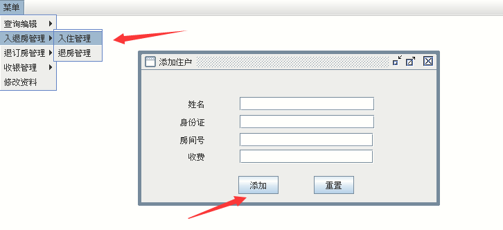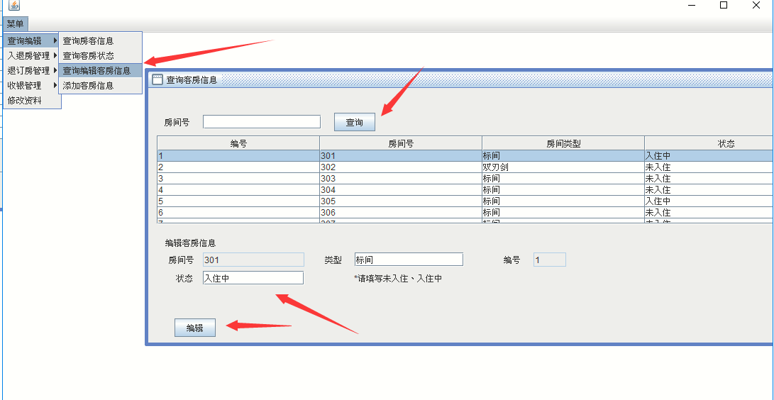 查询编辑《查询客房信息、查询客房状态、查询编辑客房信息、添加房客信息》