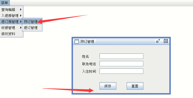 JOptionPane.showMessageDialog(null, "房间占用,请重新选择房间");
