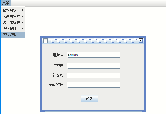 通过这次课程设计。我学到了许多令我受益匪浅的知识。感觉java的界面设计和 mfc差不多。只是java没有可视化的界面做起来太累了。其他主要是类和对象的问题。实现起来还是挺简单的。综合了根据中小型星级酒店的实际情况的特点, 虽然用户界面比较一般,但操作使用还是方便。符合酒店管理的基本流程。但由于时间仓促,一些不足之处还很多、比如美化和部分功能设计的都比较简单、但作为学生学习参考以及课程设计还是不错的选择。